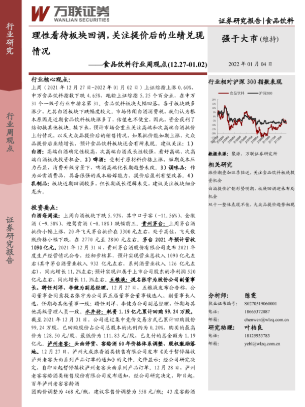 【万联证券】【20220104】20220104-万联证券-食品饮料行业周观点:理性看待板块回调,关注提价后的业绩兑现情况-10页