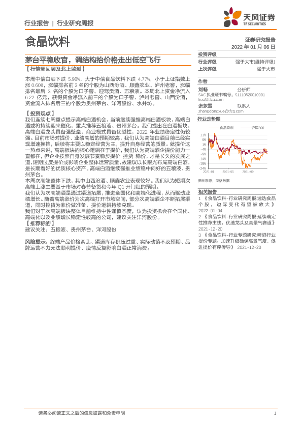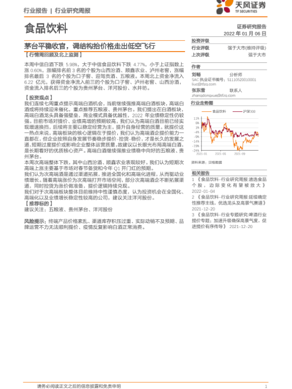 【天风证券】【20220106】食品饮料行业研究周报:茅台平稳收官,调结构抬价格走出低空飞行-7页