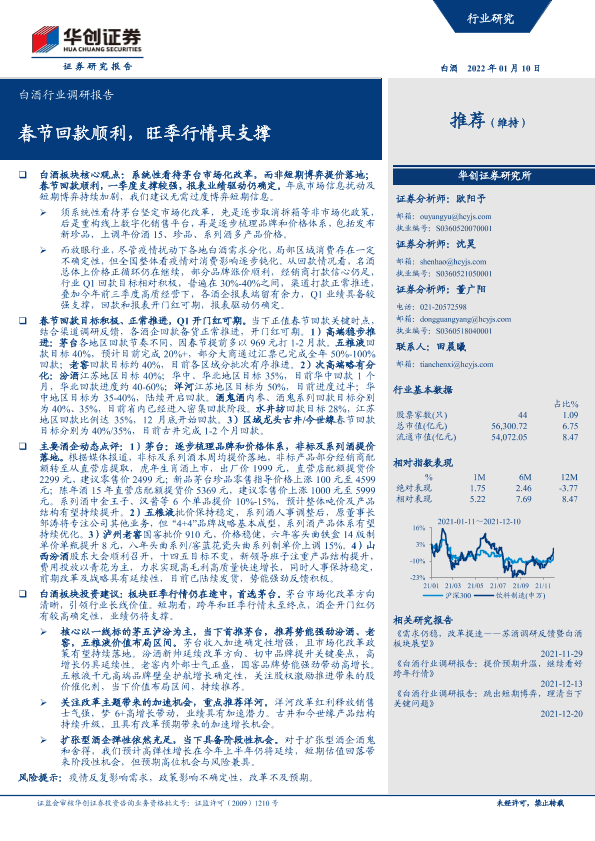 【华创证券】【20220110】白酒行业调研报告:春节回款顺利,旺季行情具支撑-6页