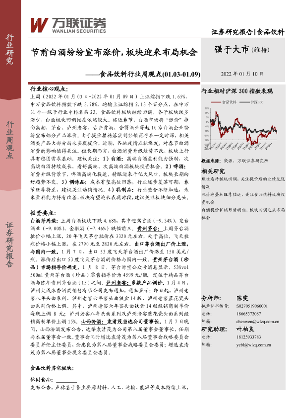 【万联证券】【20220110】20220110-万联证券-食品饮料行业周观点:节前白酒纷纷宣布涨价,板块迎来布局机会-10页
