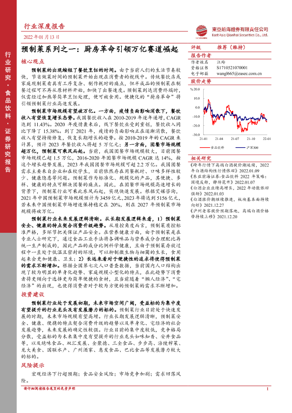 【东亚前海证券】【20220113】20220113-东亚前海证券-食品饮料行业深度报告:预制菜系列之一:厨房革命引领万亿赛道崛起-19页