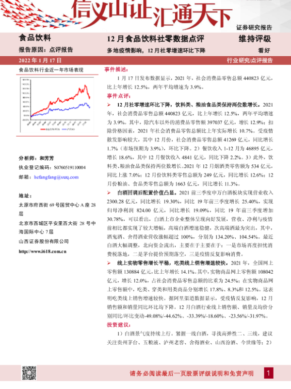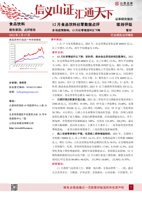 【山西证券】【20220117】12月食品饮料社零数据点评:多地疫情影响,12月社零增速环比下降-7页