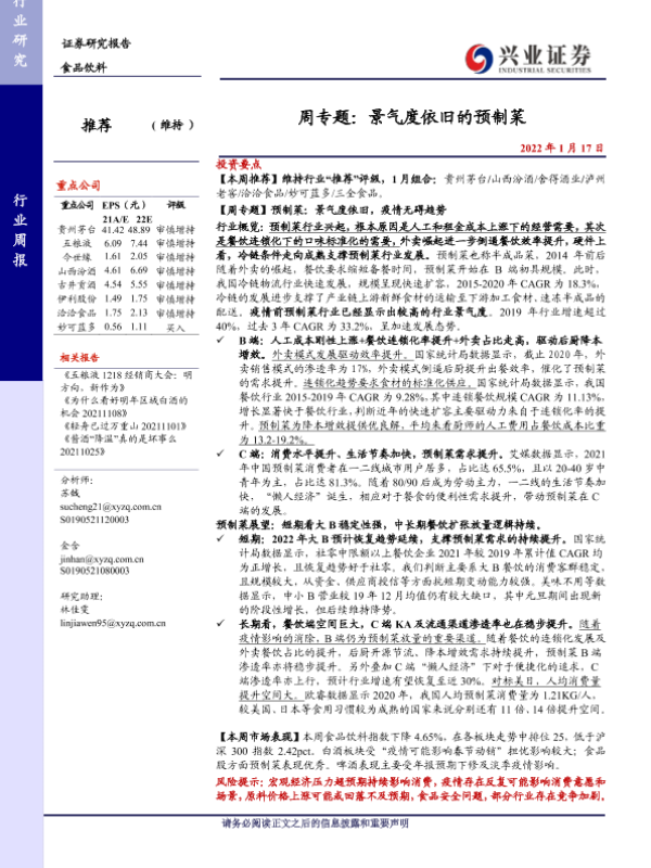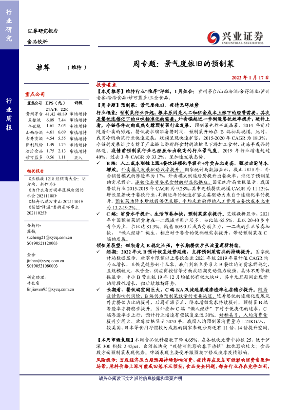 【兴业证券】【20220117】20220117-兴业证券-食品饮料周专题:景气度依旧的预制菜-27页