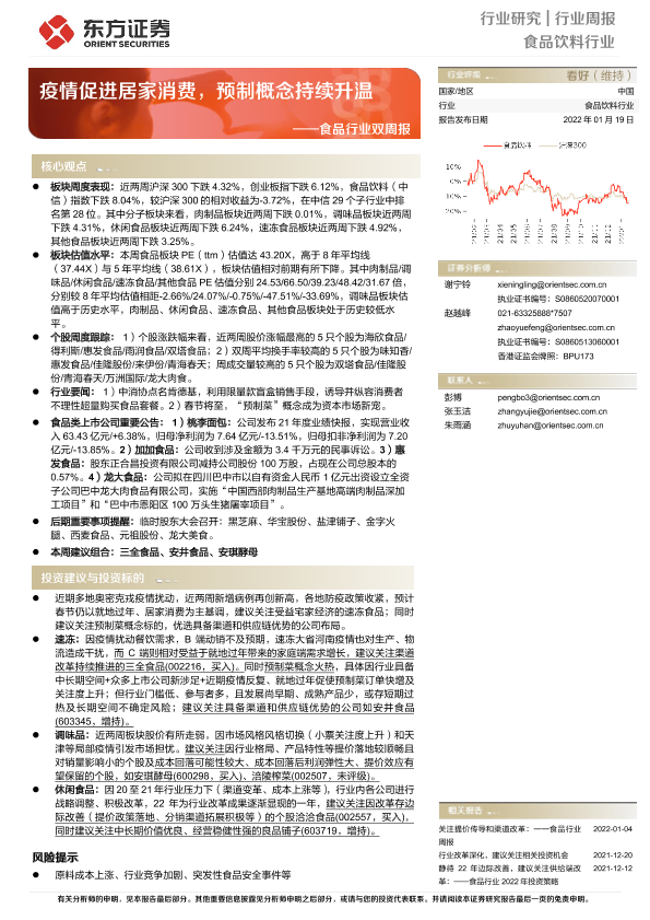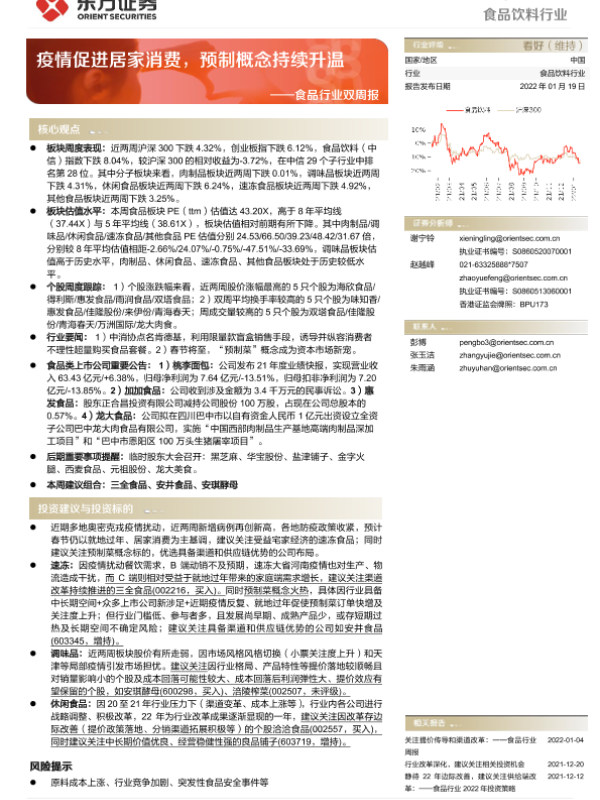【东方证券】【20220119】20220119-东方证券-食品行业双周报:疫情促进居家消费,预制概念持续升温-14页