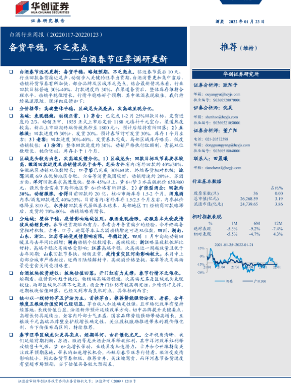 【华创证券】【20220123】白酒行业周报:备货平稳,不乏亮点——白酒春节旺季调研更新-7页