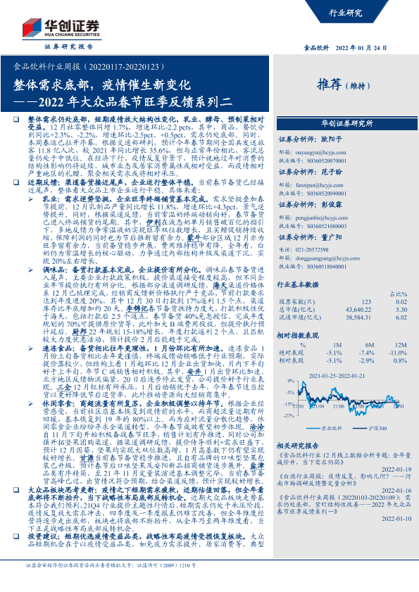 【华创证券】【20220124】2022年大众品春节旺季反馈系列二:整体需求底部,疫情催生新变化-8页