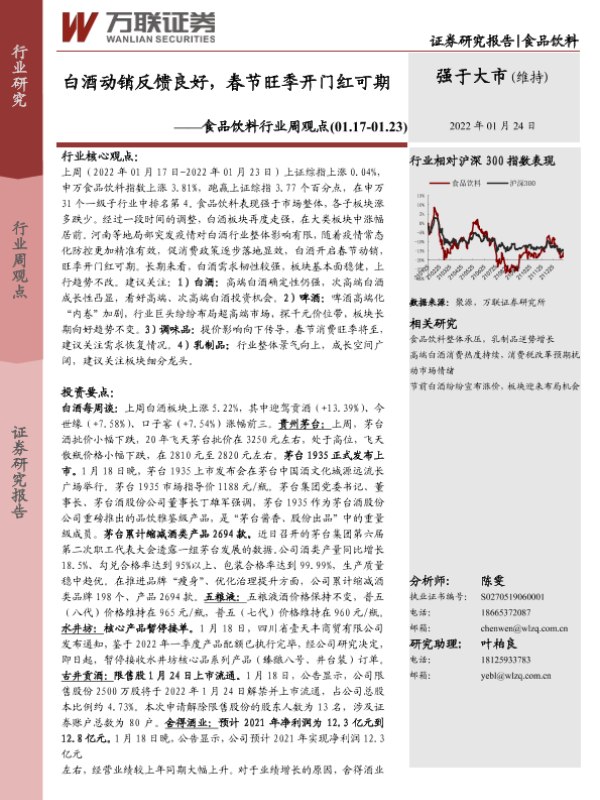 【万联证券】【20220124】20220124-万联证券-食品饮料行业周观点:白酒动销反馈良好,春节旺季开门红可期-11页