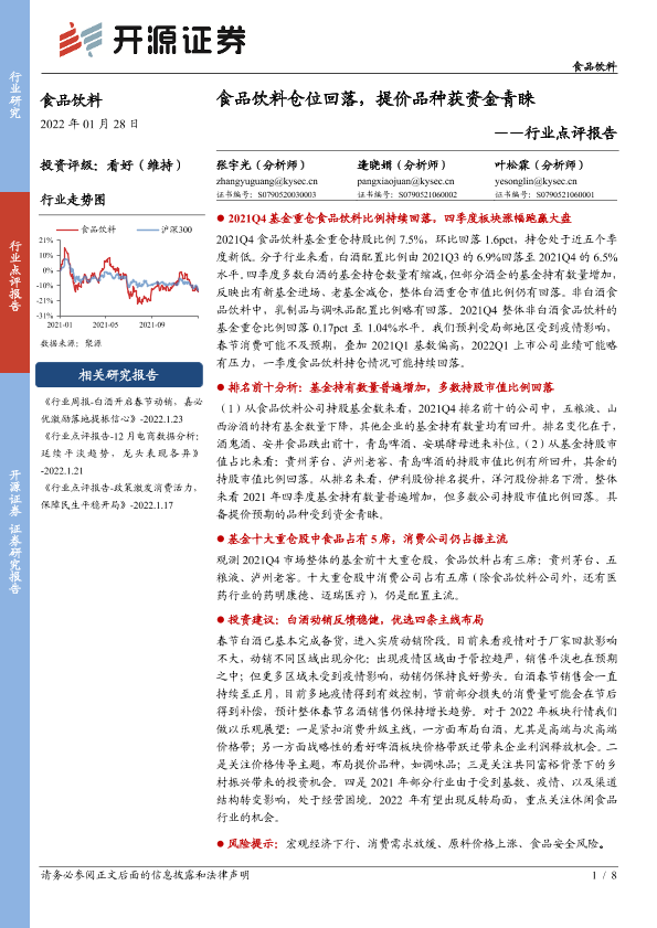 【开源证券】【20220128】食品饮料行业点评报告:食品饮料仓位回落,提价品种获资金青睐-8页