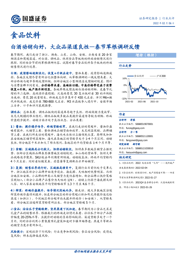 【国盛证券】【20220206】食品饮料:春节草根调研反馈-白酒动销向好,大众品渠道良性-11页