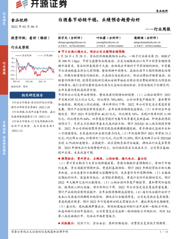 【开源证券】【20220206】食品饮料行业周报:白酒春节动销平稳,业绩预告趋势向好-11页