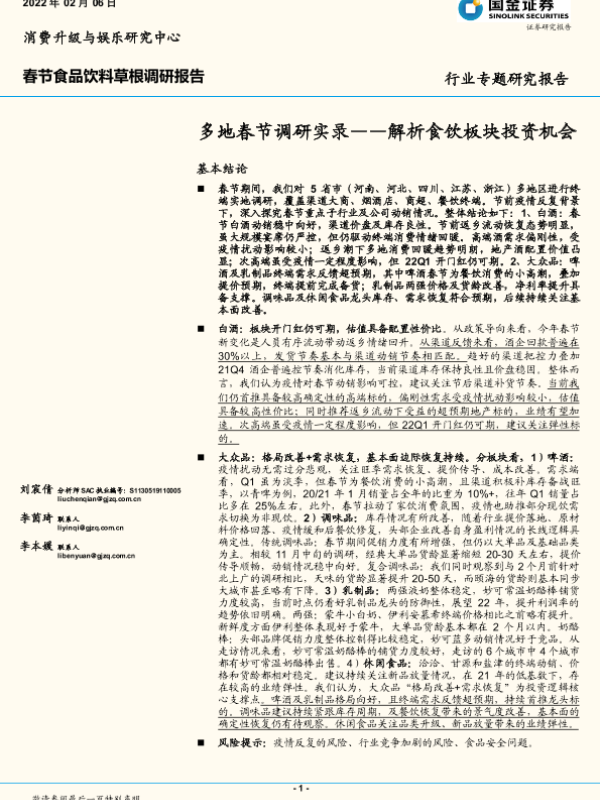 【国金证券】【20220206】20220206-国金证券-春节食品饮料草根调研报告:多地春节调研实录——解析食饮板块投资机会-22页