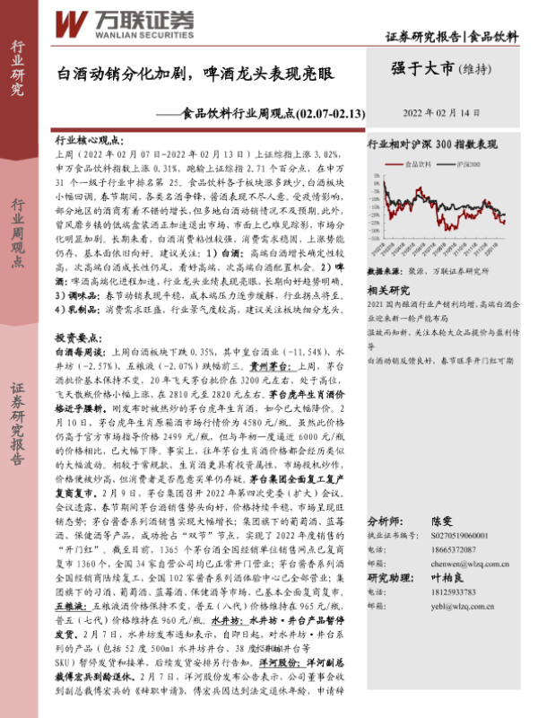 【万联证券】【20220214】20220214-万联证券-食品饮料行业周观点:白酒动销分化加剧,啤酒龙头表现亮眼-11页