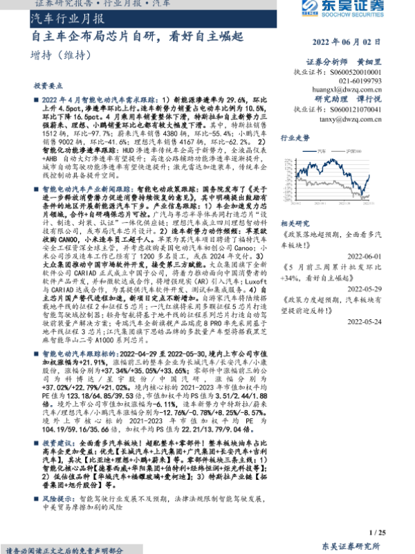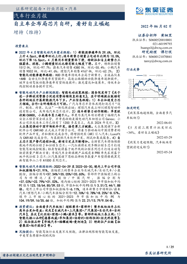 【东吴证券】【20220602】汽车行业月报:自主车企布局芯片自研,看好自主崛起-25页