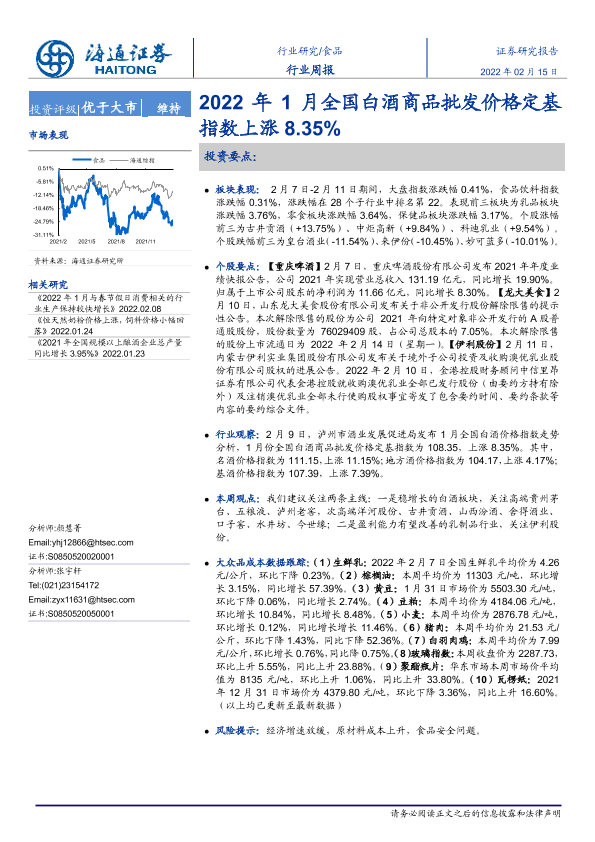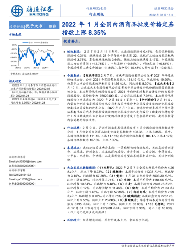 【海通证券】【20220215】2022年1月全国白酒商品批发价格定基指数上涨8.35%-9页