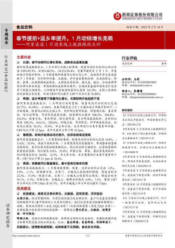 【浙商证券】【20220218】食品饮料:阿里渠道1月酒类线上数据跟踪点评-12页