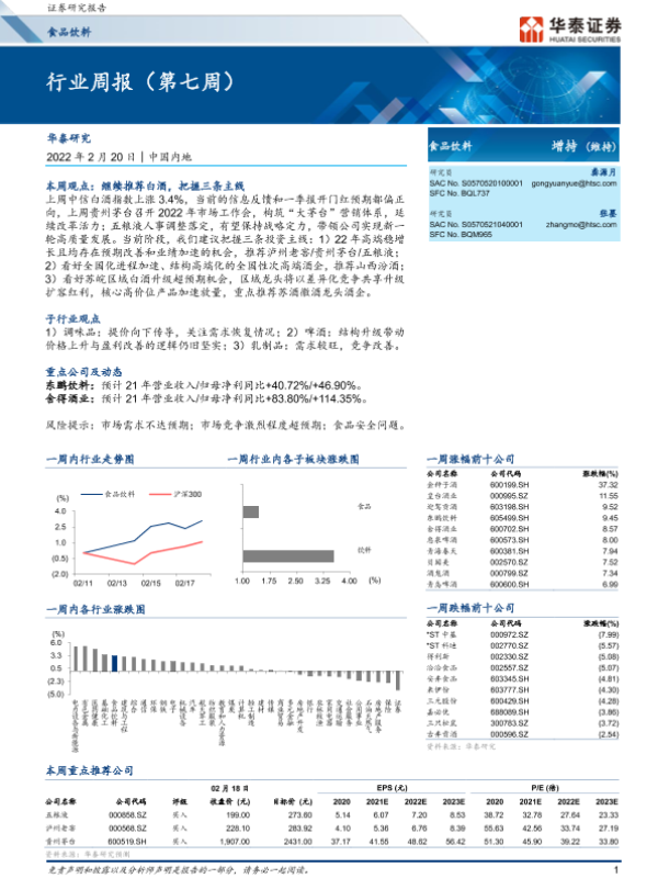 【华泰证券】【20220220】20220220-华泰证券-食品饮料行业周报(第七周)-10页