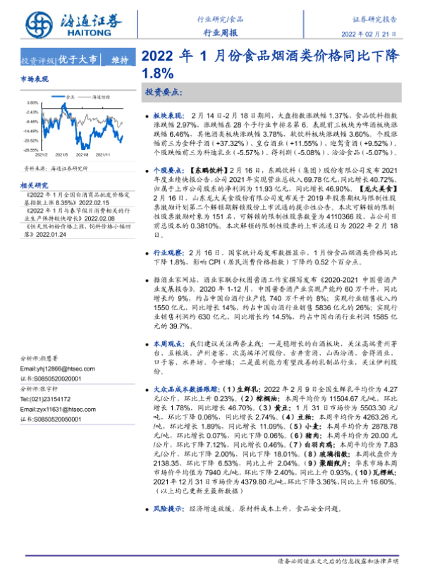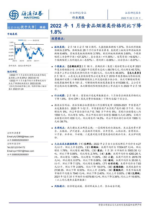 【海通证券】【20220221】2022年1月份食品烟酒类价格同比下降1.8%-9页