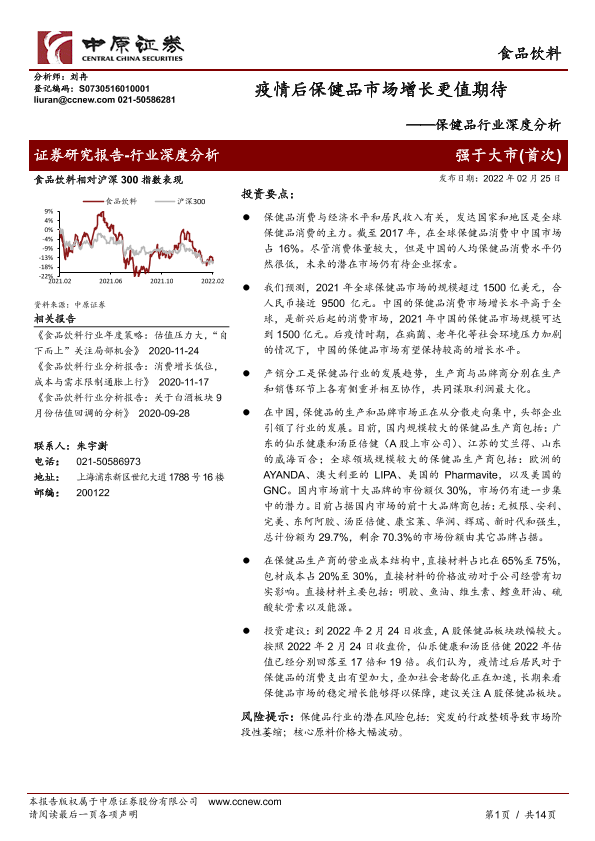 【中原证券】【20220225】疫情后保健品市场增长更值期待——保健品行业深度分析-14页