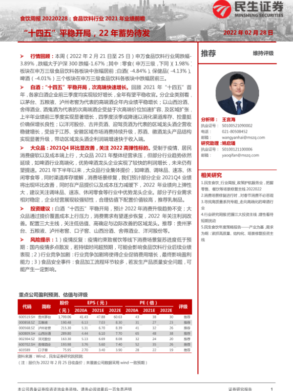 【民生证券】【20220228】食品饮料行业2021年业绩前瞻:“十四五”平稳开局,22年蓄势待发-23页