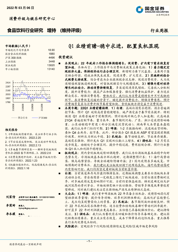 【国金证券】【20220306】20220306-国金证券-食品饮料行业研究:Q1业绩前瞻-稳中求进,配置良机显现-14页