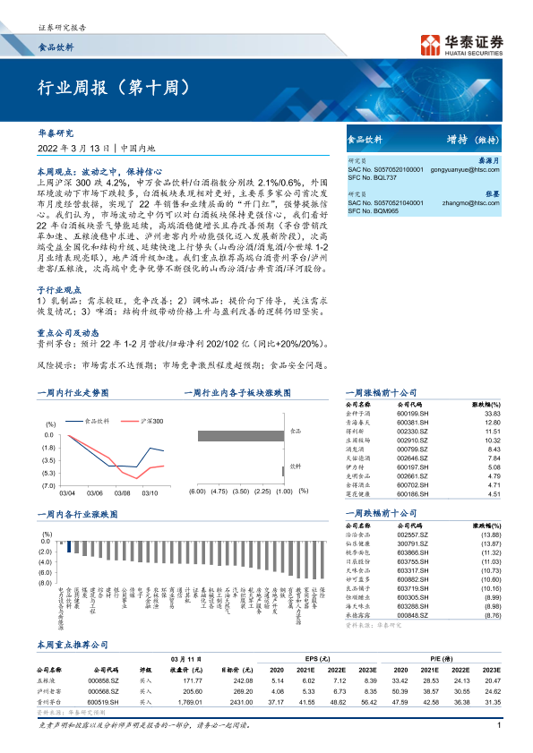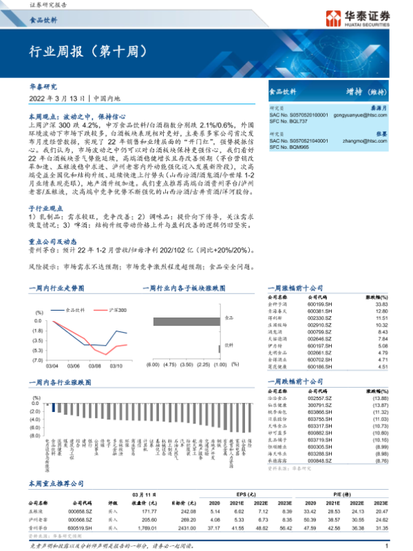 【华泰证券】【20220313】20220313-华泰证券-食品饮料行业周报(第十周)-11页