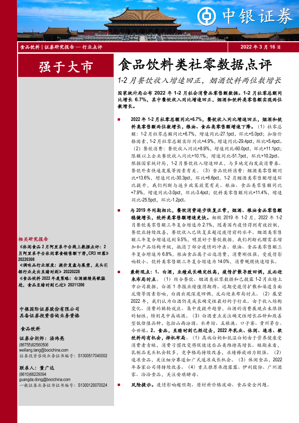【中银证券】【20220316】食品饮料类社零数据点评:1-2月餐饮收入增速回正,烟酒饮料两位数增长-4页