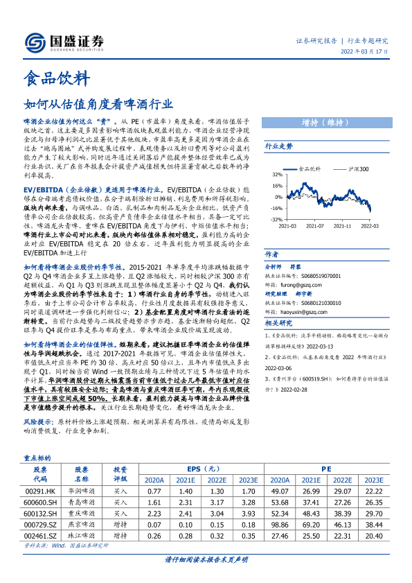 【国盛证券】【20220317】如何从估值角度看啤酒行业-12页