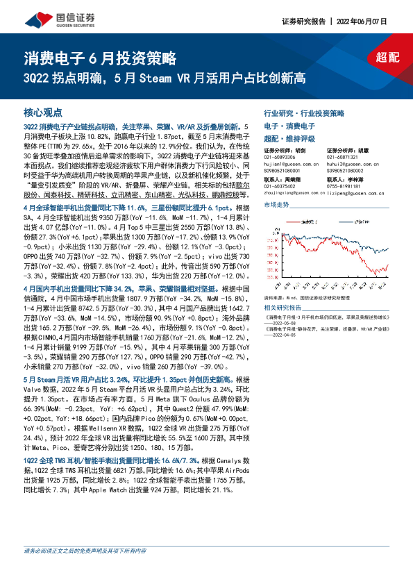 【国信证券】【20220607】消费电子行业6月投资策略:3Q22拐点明确,5月Steam VR月活用户占比创新高-23页