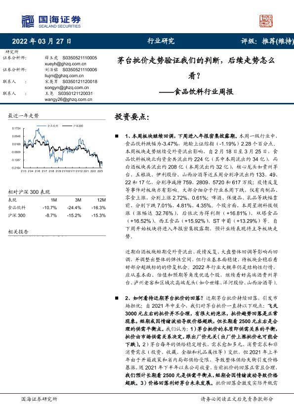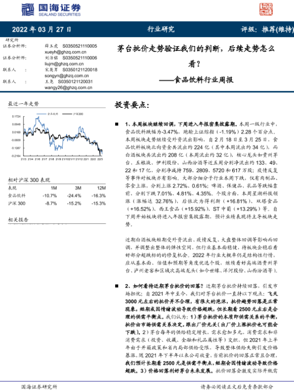 【国海证券】【20220327】20220327-国海证券-食品饮料行业周报:茅台批价走势验证我们的判断,后续走势怎么看?-22页