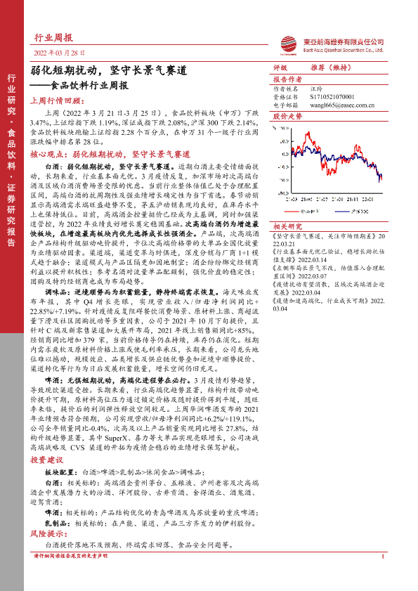 【东亚前海证券】【20220328】20220328-东亚前海证券-食品饮料行业周报:弱化短期扰动,坚守长景气赛道-20页