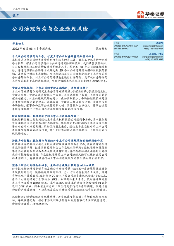 【华泰证券】【20220606】深度研究:公司治理行为与企业违规风险-40页