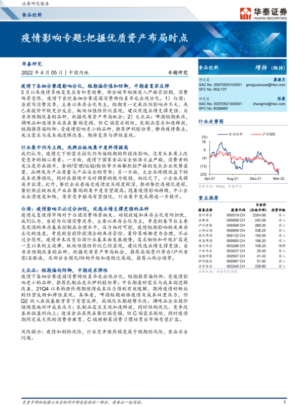 【华泰证券】【20220405】20220405-华泰证券-食品饮料专题研究:疫情影响专题:把握优质资产布局时点-13页