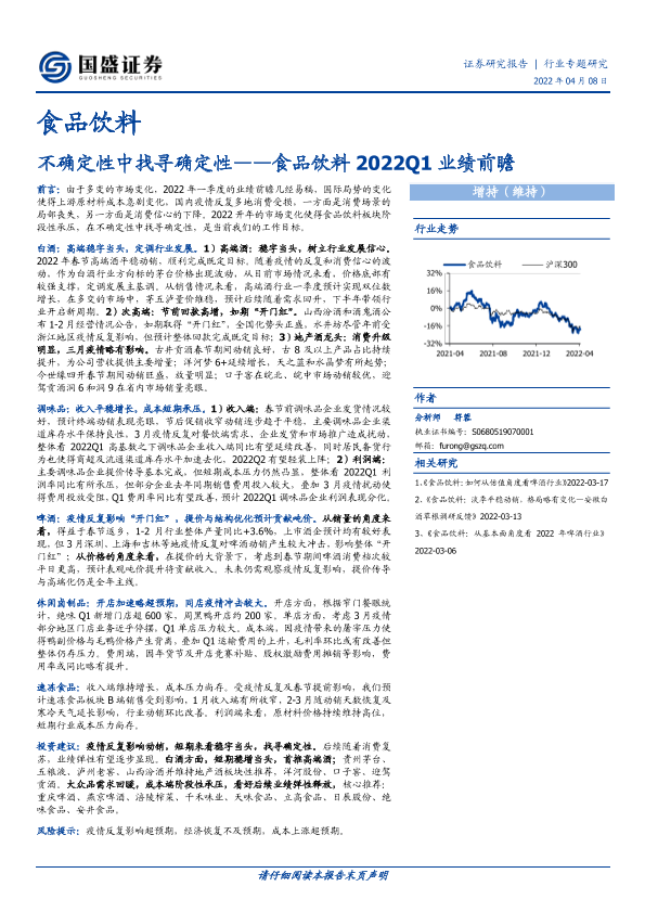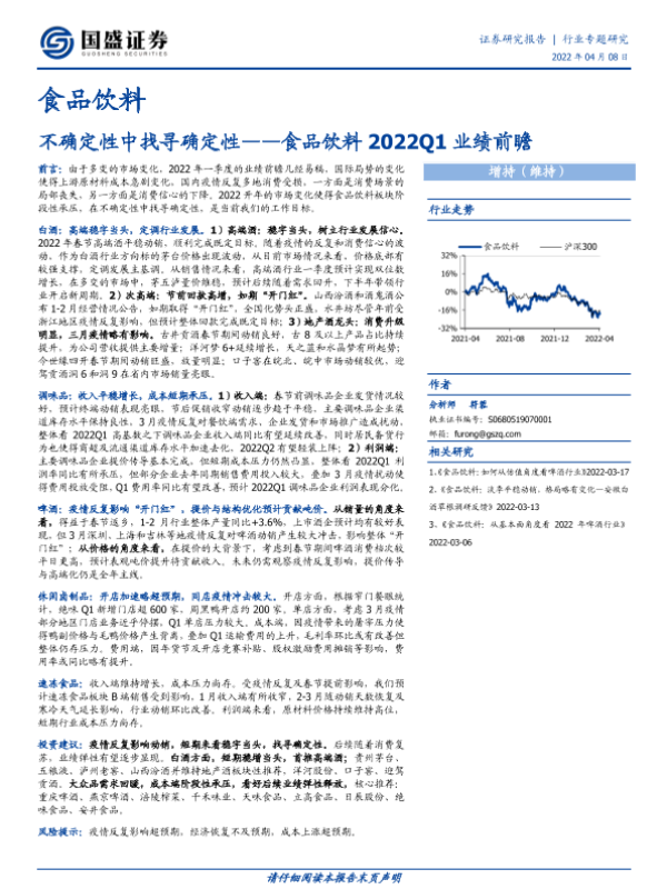 【国盛证券】【20220408】食品饮料2022Q1业绩前瞻:不确定性中找寻确定性-9页