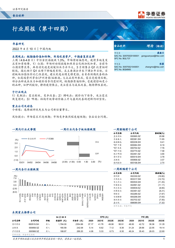 【华泰证券】【20220410】20220410-华泰证券-食品饮料行业周报(第十四周)-11页