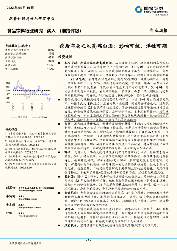 【国金证券】【20220410】20220410-国金证券-食品饮料行业研究:疫后布局之次高端白酒:影响可控,弹性可期-15页