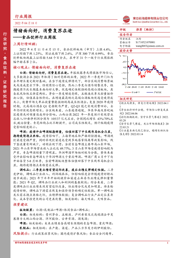 【东亚前海证券】【20220418】20220418-东亚前海证券-食品饮料行业周报:情绪面向好,消费复苏在途-20页