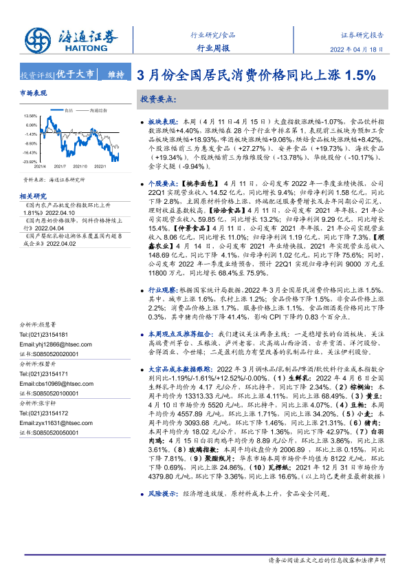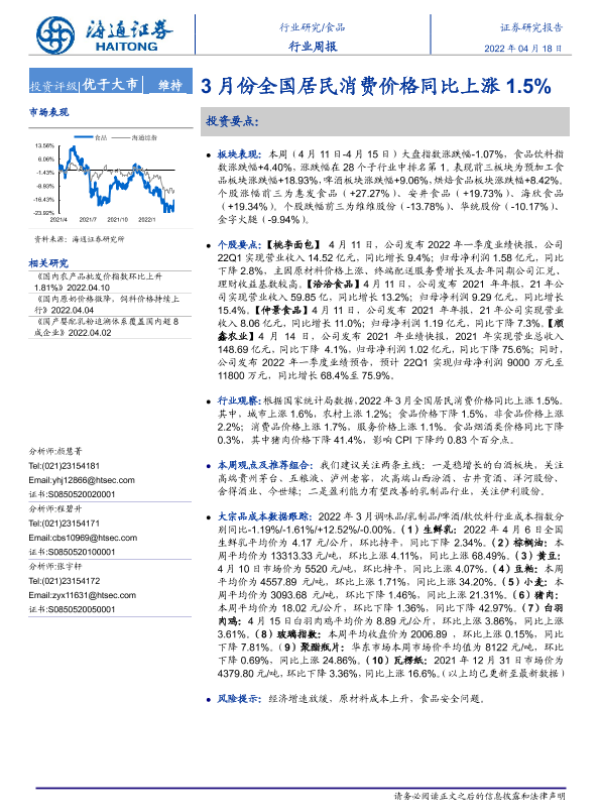 【海通证券】【20220418】20220418-海通证券-食品行业周报:3月份全国居民消费价格同比上涨1.5%-10页