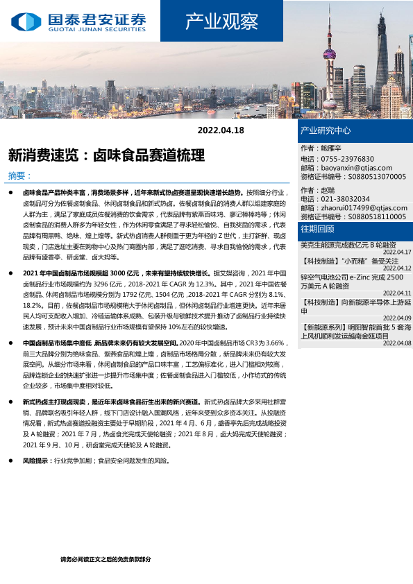 【国泰君安证券】【20220418】新消费速览:卤味食品赛道梳理-7页