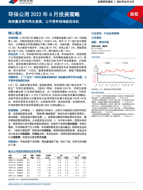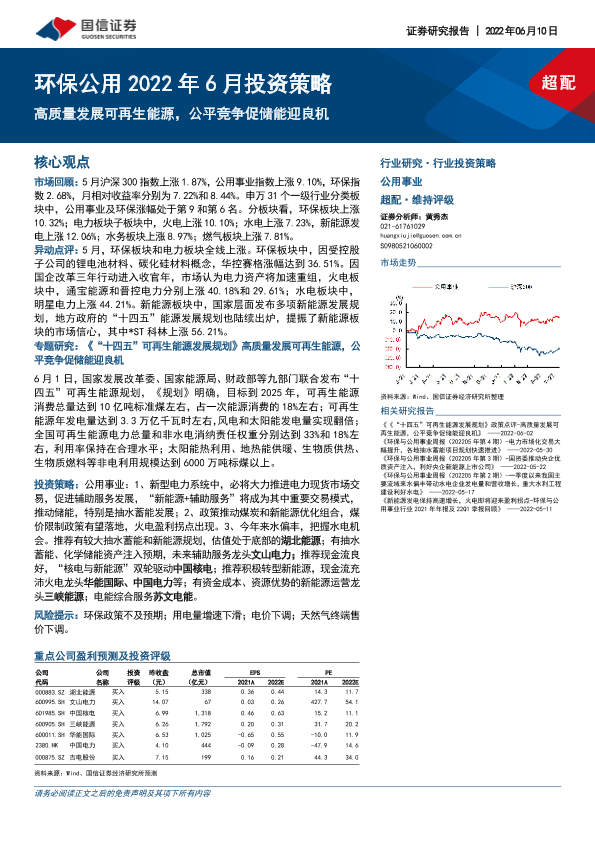 【国信证券】【20220610】环保公用事业行业2022年6月投资策略:高质量发展可再生能源,公平竞争促储能迎良机-32页