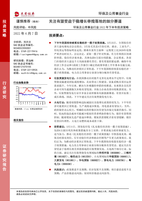 【东莞证券】【20220607】环保及公用事业行业2022年下半年投资策略:关注有望受益于稳增长举措落地的细分赛道-26页