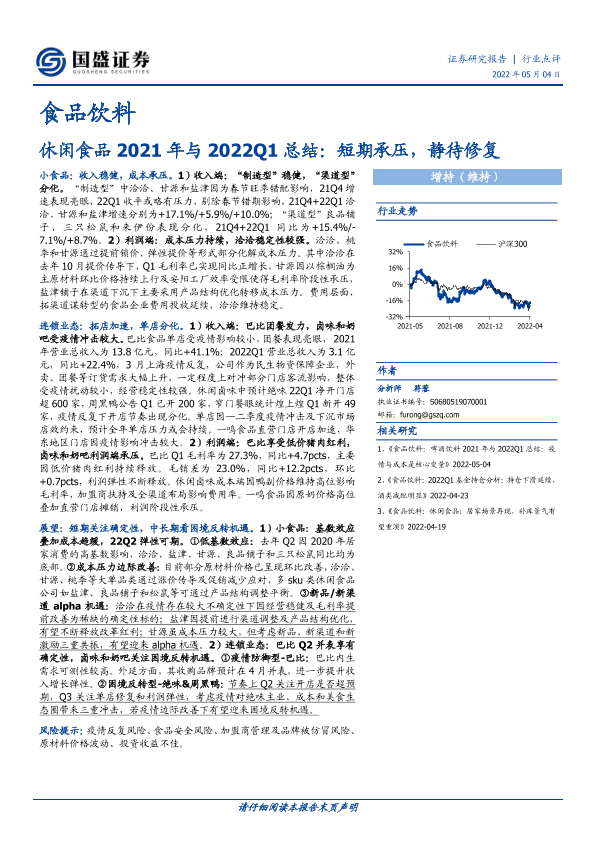 【国盛证券】【20220504】食品饮料:休闲食品2021年与2022Q1总结:短期承压,静待修复-10页