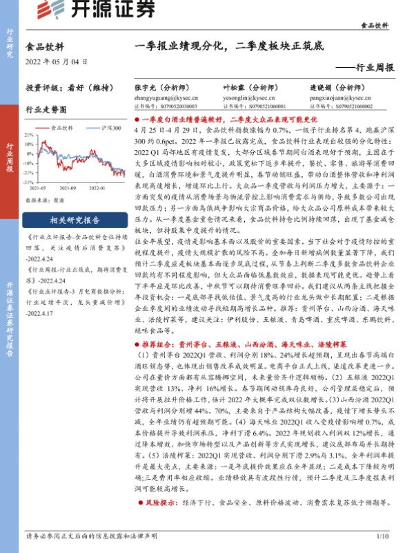 【开源证券】【20220504】食品饮料行业周报:一季报业绩现分化,二季度板块正筑底-10页