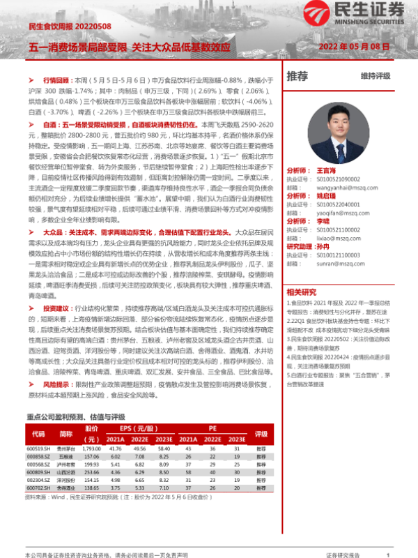 【民生证券】【20220508】民生食饮周报:五一消费场景局部受限 关注大众品低基数效应-11页