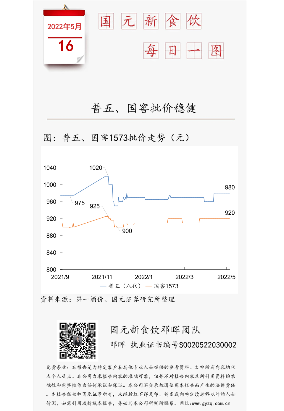 【国元证券】【20220516】国元新食饮每日一图:普五、国窖批价稳健-1页