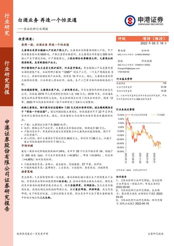 【申港证券】【20220516】20220516-申港证券-食品饮料行业周报:白酒业务 再造一个怡亚通-8页
