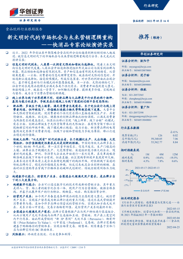 【华创证券】【20220516】20220516-华创证券-食品饮料行业跟踪报告:快消品专家论坛演讲实录-新文明时代的市场机会与未来营销逻辑重构-15页