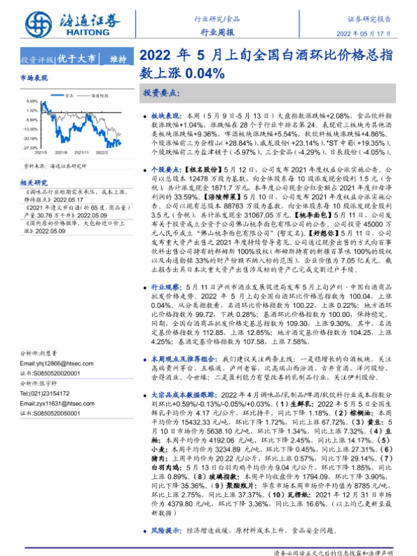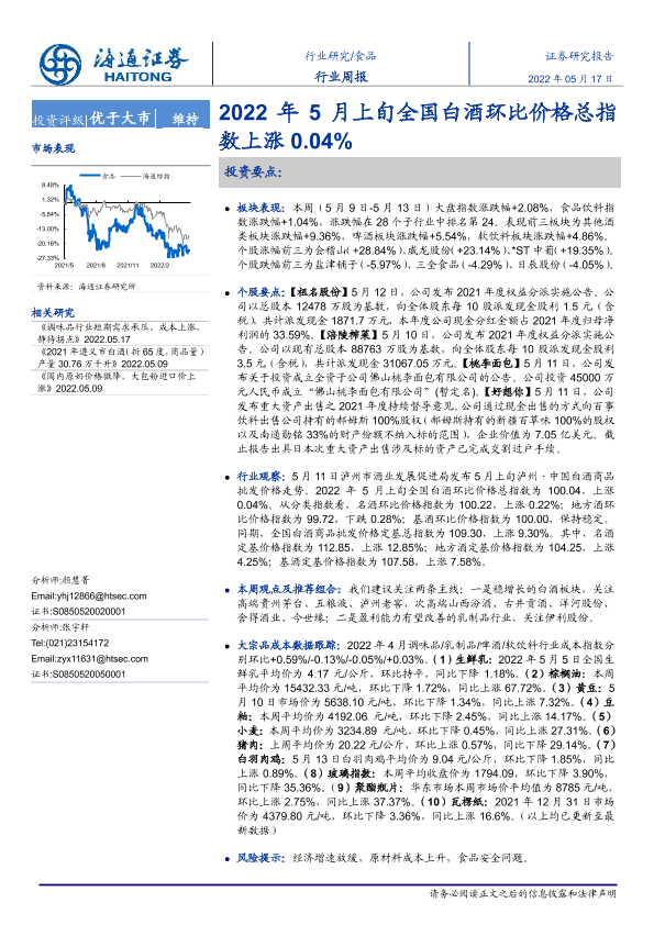 【海通证券】【20220517】2022年5月上旬全国白酒环比价格总指数上涨0.04%-10页