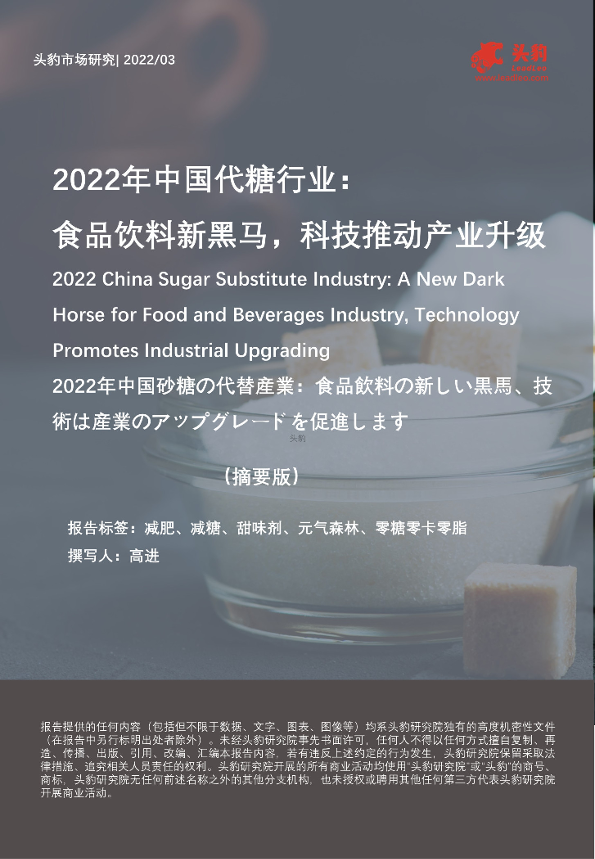 【头豹研究院】【20220517】2022年中国代糖行业:食品饮料新黑马,科技推动产业升级-10页