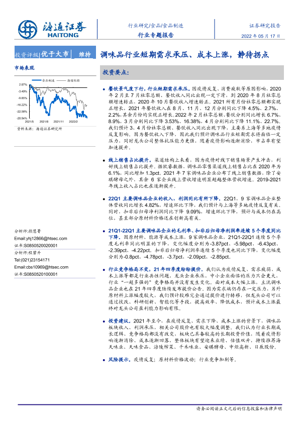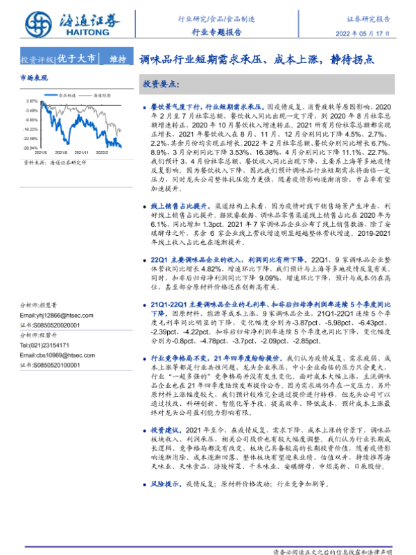 【海通证券】【20220517】20220517-海通证券-食品制造行业专题报告:调味品行业短期需求承压、成本上涨,静待拐点-20页