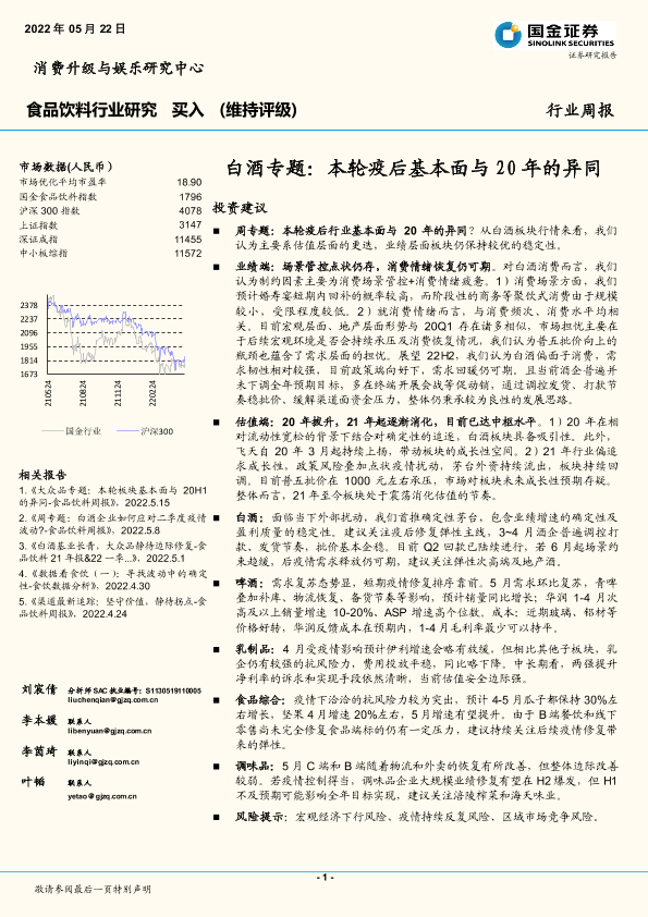 【国金证券】【20220522】20220522-国金证券-白酒专题:本轮疫后基本面与20年的异同-19页